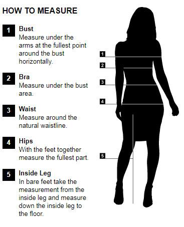 | Hip | 33" - 36" | 36" - 39" | 39" - 41" | 41" - 43" | 43" - 46" | 46" - 49" |